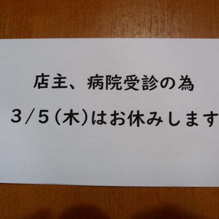 | 閉店 | PM6時20分(平日) PM5時(土曜、祝日) |