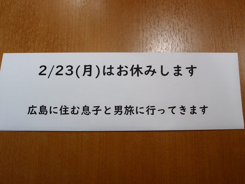 2/23はお休みします