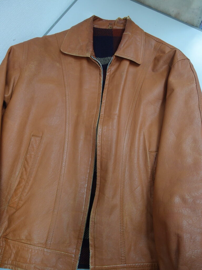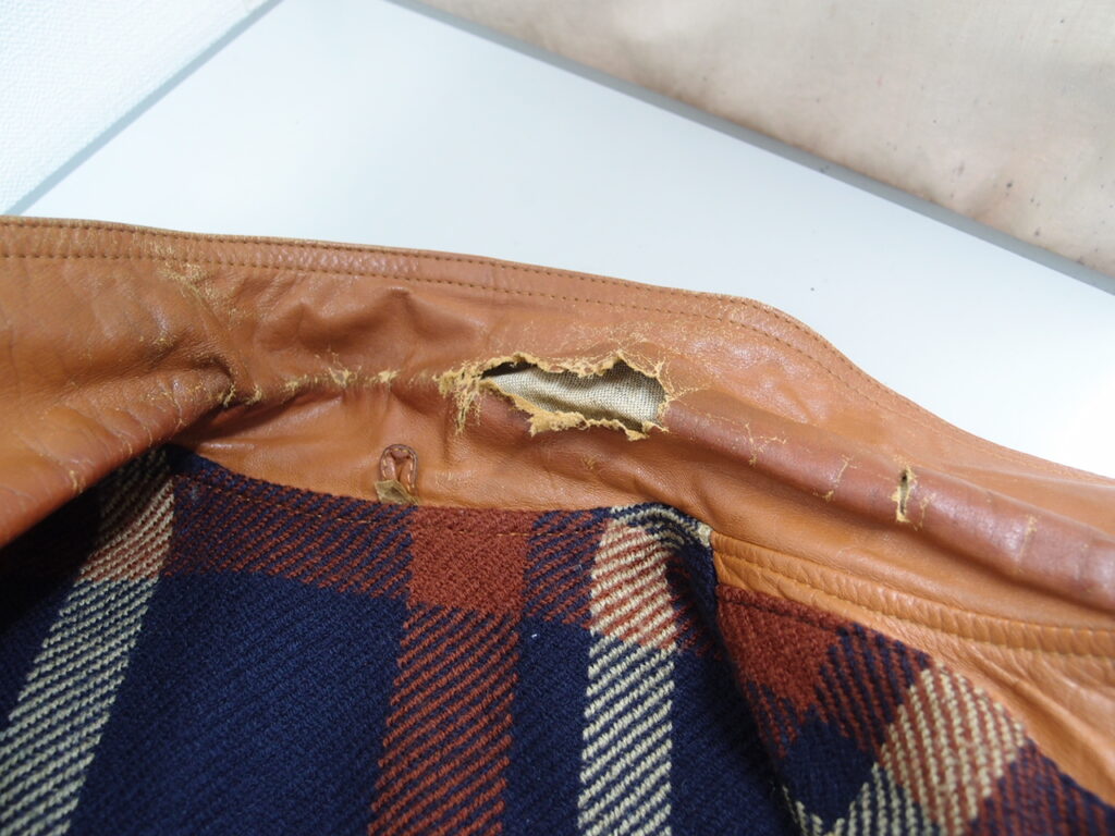 ただ、この革ジャンは襟の内側が破れていますので、修理をご依頼いただきました。