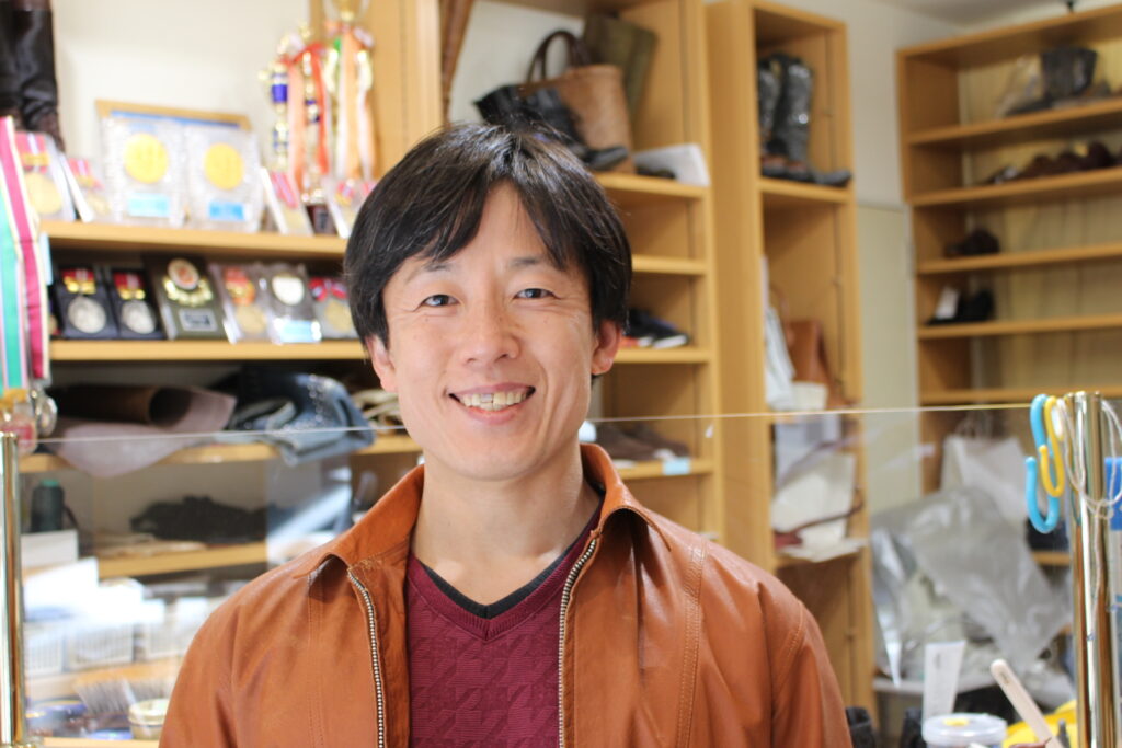 先日ご紹介した革ジャン襟破れの修理のお客様が登場です。